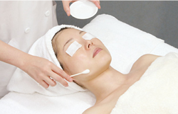 超音波洗浄→角栓吸引→整肌→プレピーリング→中和→美容液導入(高濃度ビタミンC)→トリートメント(デコルテショート付き)→ホワイトCパック&クールホワイトマスク開きケア